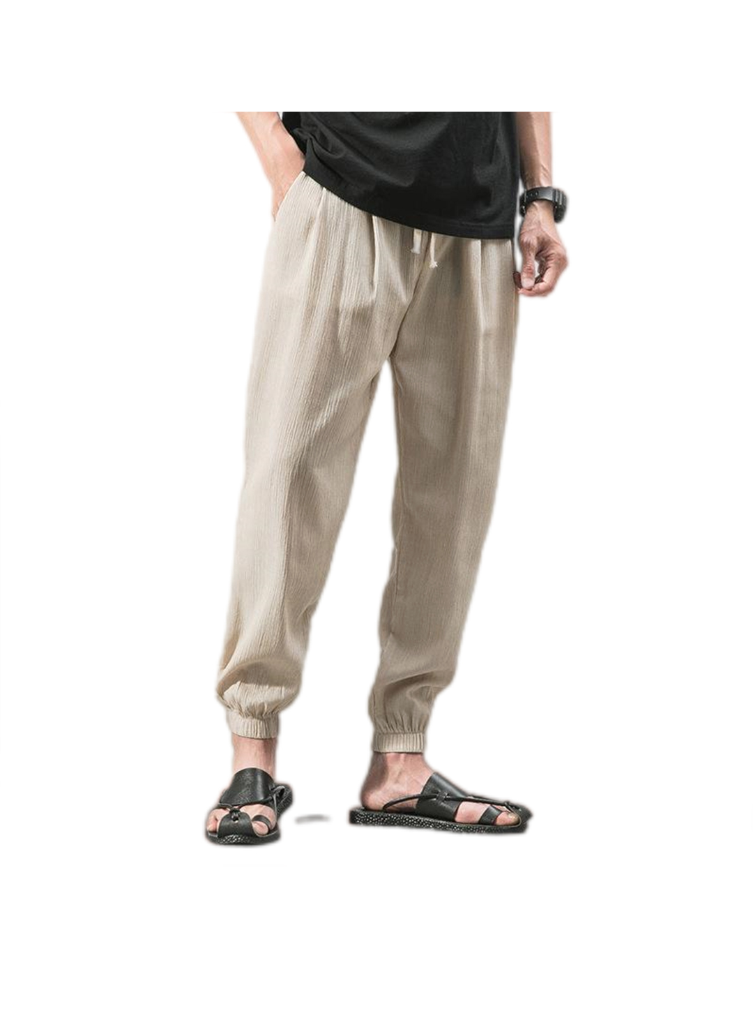 Thomas Adjustable Drawstring Faux Linen Jogger Pants
